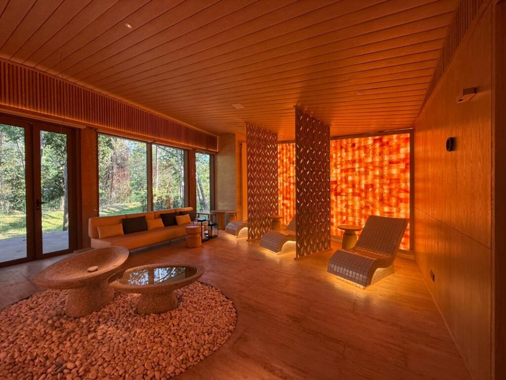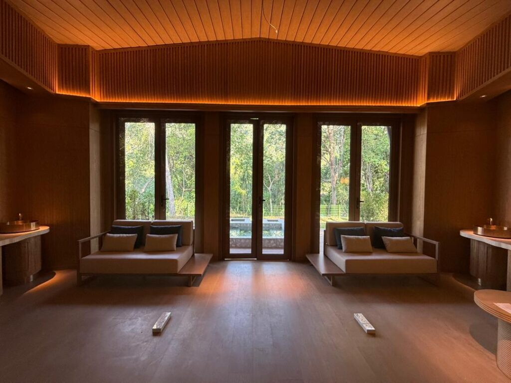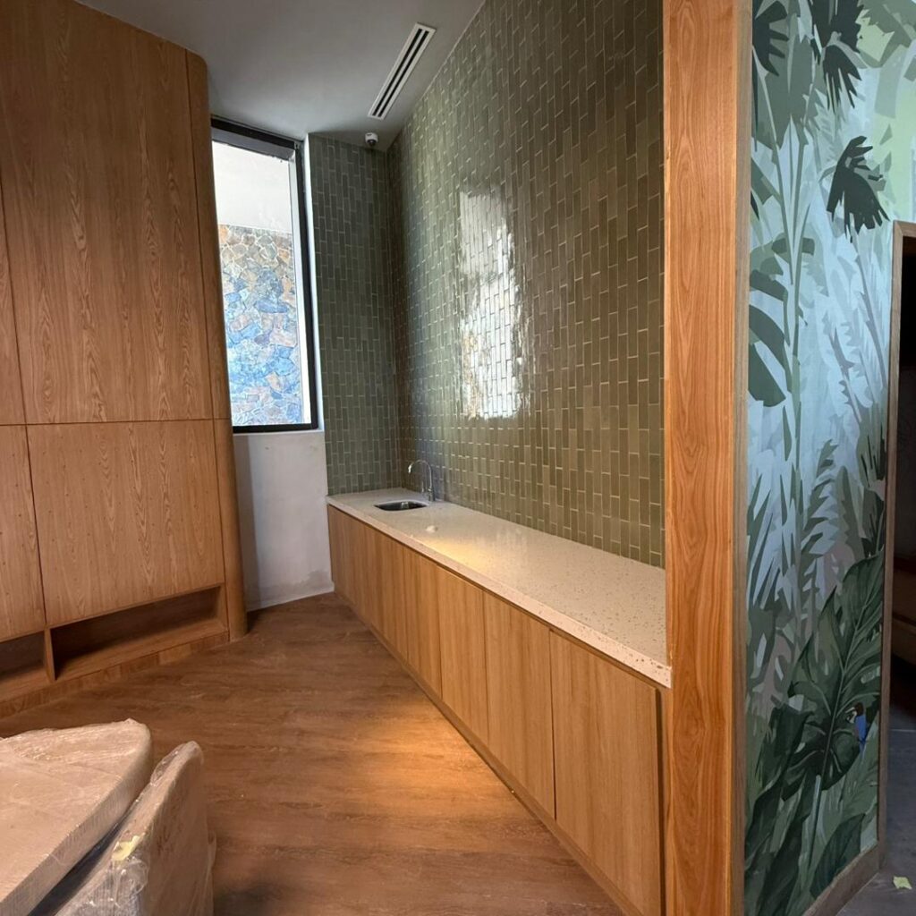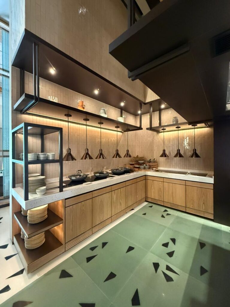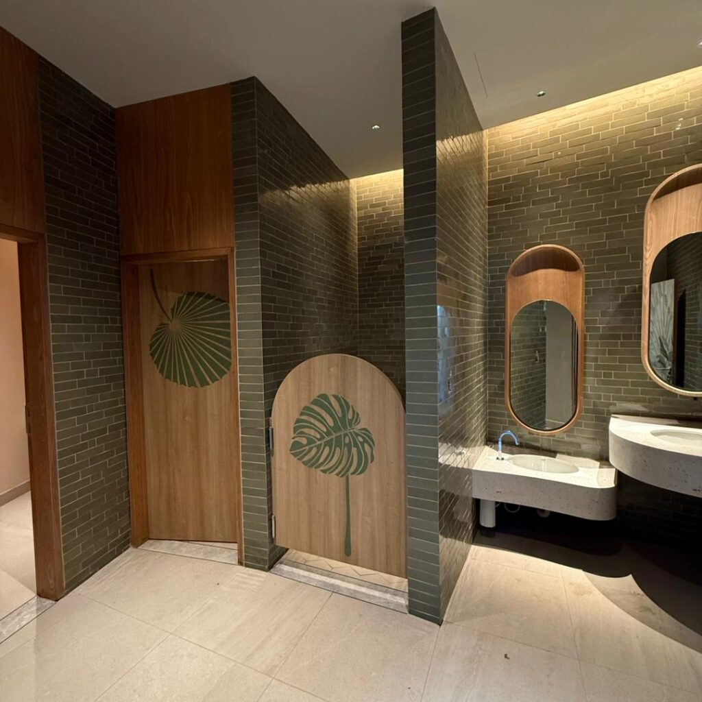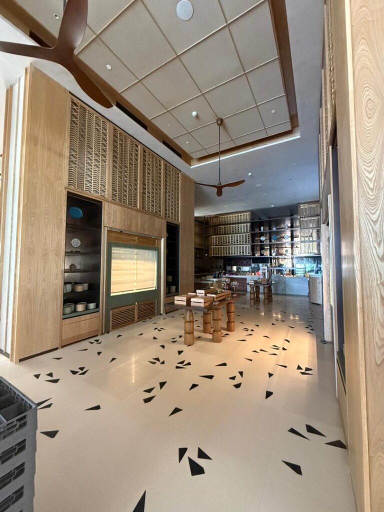 Natural materials play a key role in defining the interior character. Timber finishes, soft upholstery, and woven textures are used to create a cohesive and inviting atmosphere that aligns with the tropical resort identity.
