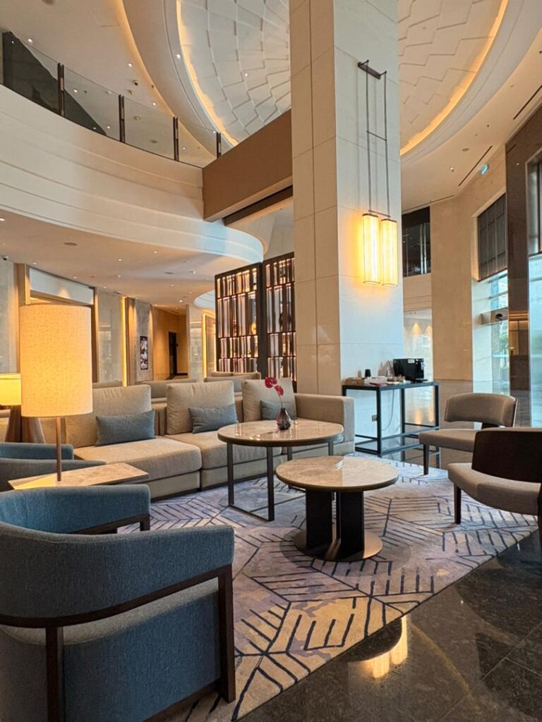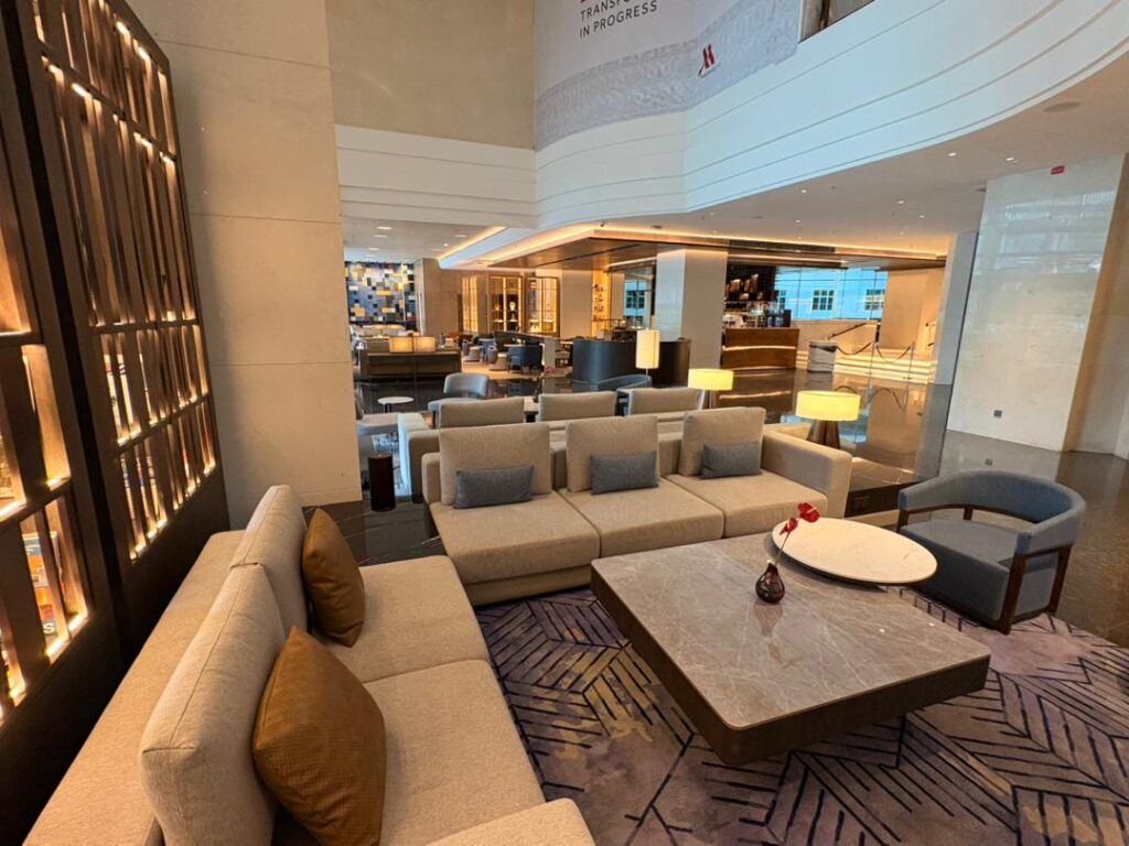 Through this renovation, the Marriott Hotel public areas are transformed into a sophisticated and functional setting, delivering an enhanced guest experience aligned with contemporary hospitality expectations.